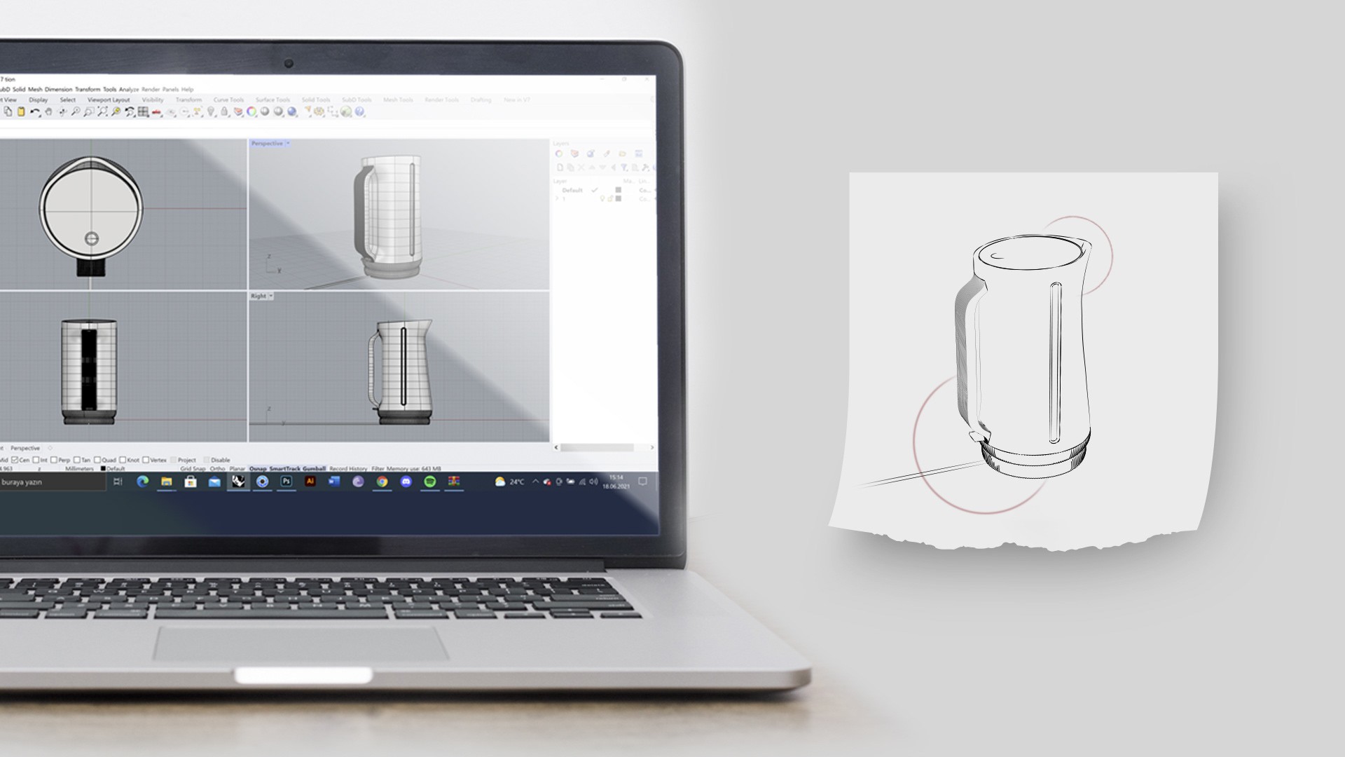 This project involved designing a modern, production-ready kettle within an extremely short timeframe of just three days. The goal was to create a product that would stand out from existing models through a clean visual language, functional enhancements, and ergonomic form—all while staying aligned with production realities. The design needed to respond to user expectations while offering a fresh take on a common household appliance.